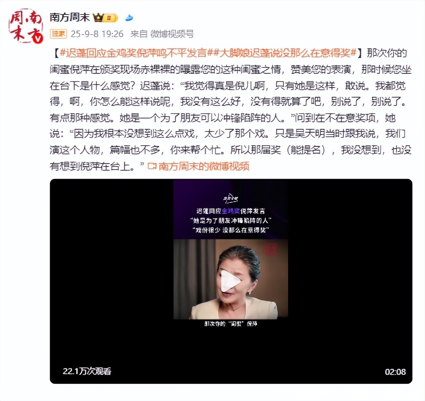 46. 字里行间流露出对迟蓬及其他未获奖演员的深切惋惜与不甘。